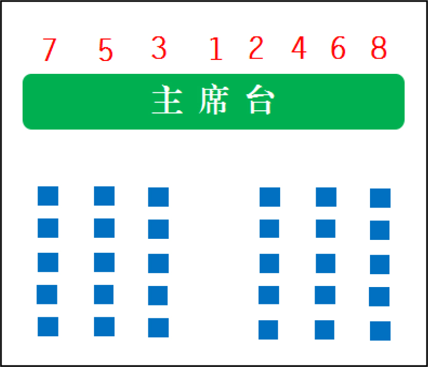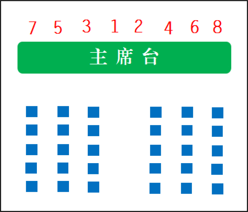與會(huì)席人數(shù)為奇數(shù)時(shí),座次按如下安排,見圖A.5:
