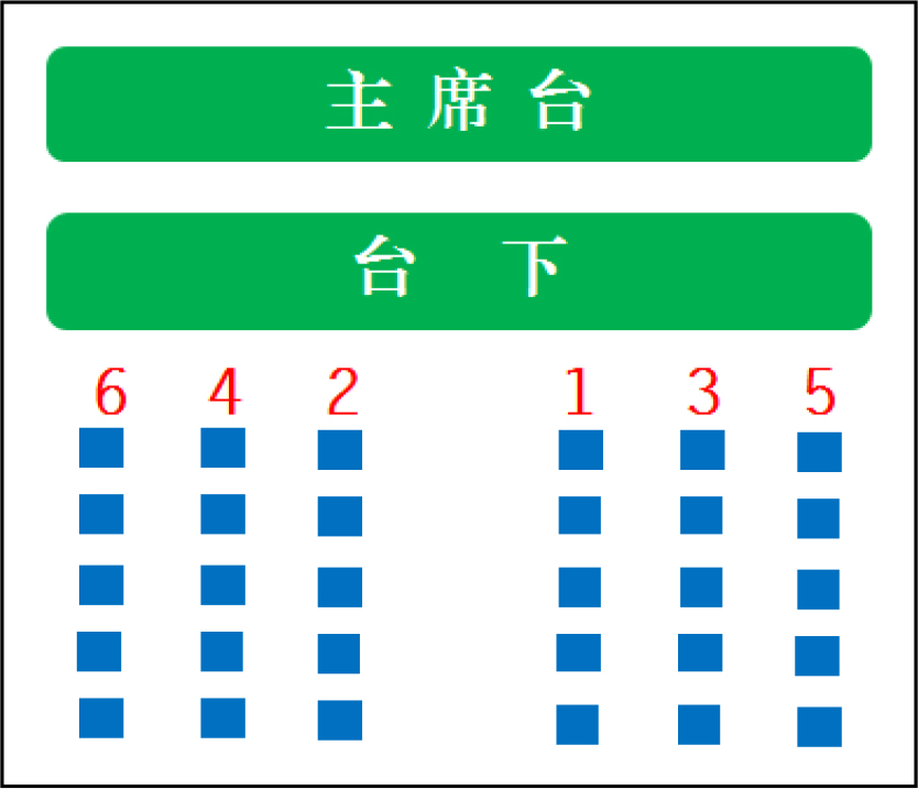 與會(huì)席人數(shù)為偶數(shù)時(shí),座次按如下安排,見圖A.6: